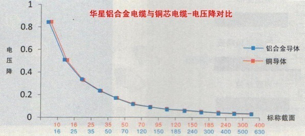 鋁合金電纜和銅芯電纜在同截面同等長度的情況下,其導電率是銅電纜的 61.8%,載流量約為銅電纜的78%,但其質(zhì)量不到同等電氣性能銅纜的一半。根據(jù)電纜截面的規(guī)格分布,將鋁合金電纜的截面增大1.5倍左右,載流量與電壓降等電氣參數(shù)與銅纜相當,因此在已知銅電纜型號規(guī)格的前提下,只需按照70及70以下小規(guī)格的銅纜對應(yīng)使用加大一個規(guī)格的鋁合金電纜,95及95以上直接對應(yīng)使用加大兩個個規(guī)格的鋁合金電纜即可,其電氣性能、機械性能及相應(yīng)的應(yīng)用指標與原銅芯電纜設(shè)計標準一致,其實際使用性能更優(yōu)于原有的銅芯電纜設(shè)計標準。